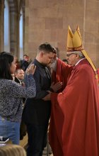 Daniel Winzer wird von Bischof Wiesemann gefirmt © Klaus Landry